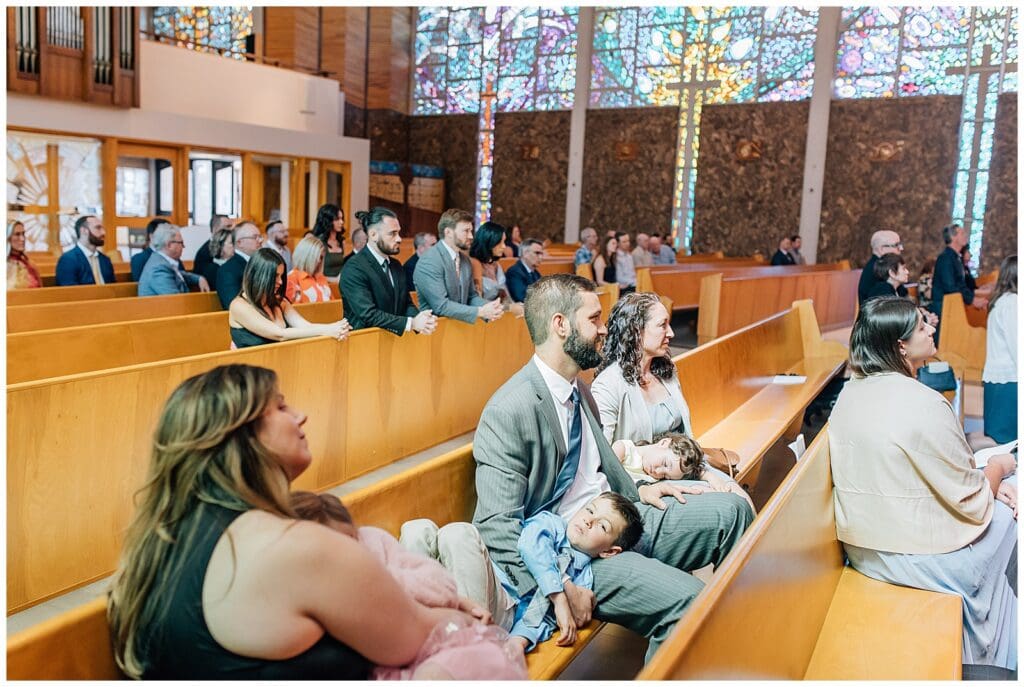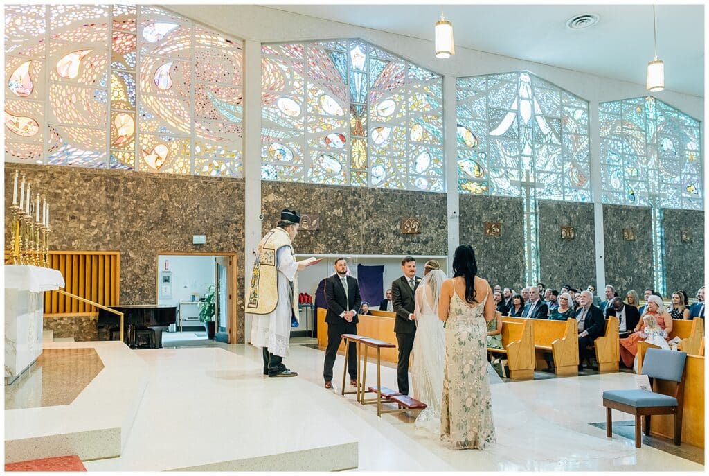 A very cute part of the day happened right after: since the Airbnb was just down the street from St. Ambrose Church, Katie and her entire group walked to the ceremony together. It was simple, but memorable.